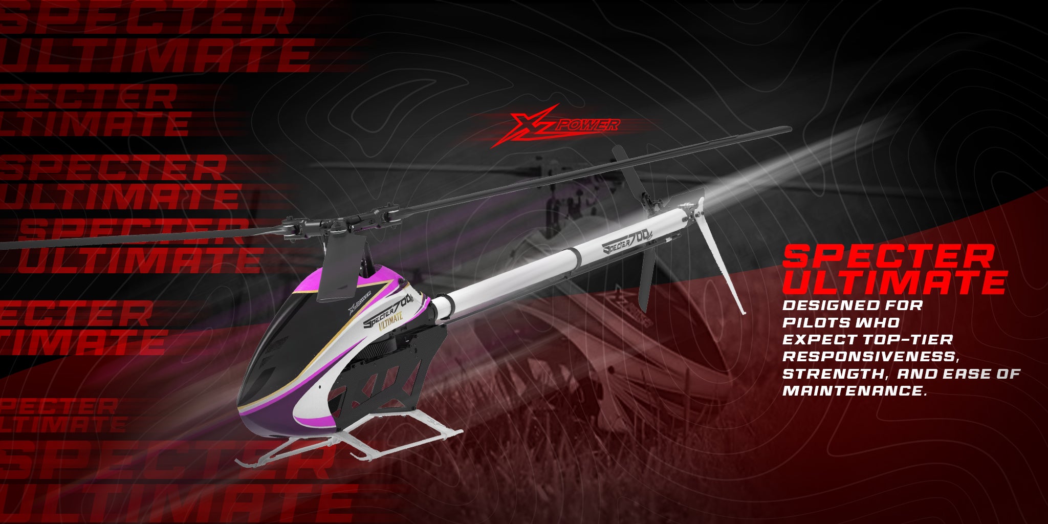 The Specter 700 Ultimate 3-Blade is XLPower’s flagship evolution of precision 3D helicopter engineering, built for pilots who demand the ultimate in cyclic authority, tail hold, and in-air stability. Based on the proven Ultimate platform, this version adds a purpose-designed tri-blade head system, refined control geometry, and reinforced mechanics to deliver a flight feel that’s tighter, faster, and smoother than ever before.