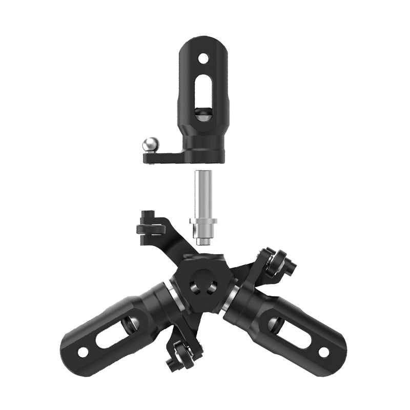 The Specter Ultimate’s 3-blade head system is precision-engineered for maximum rigidity and control.Machined from 7075-T6 aluminum, it delivers rock-solid stability under extreme 3D loads while maintaining buttery-smooth cyclic transitions. Every detail, from the feathering spindle to the pitch links, is optimized for pure, linear flight response.