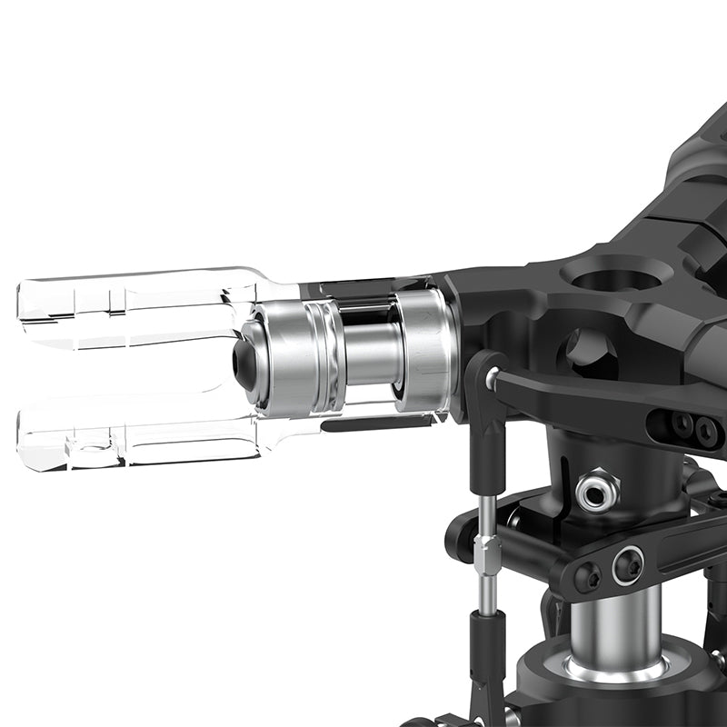 A newly engineered rigid damper system and bearing block deliver zero play and ultra-low vibration at any head speed. This ultra-precise interface between the spindle and blade grips gives the Specter its iconic “locked-in” flight feel, even through aggressive pitch reversals or high-G tic-tocs. The result is a more direct control response, superior stability, and an exceptionally smooth mechanical pulse.