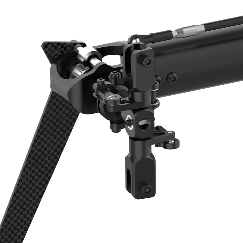 Machined from high-strength 7075-grade aluminum, the rigid rotor head provides maximum stability and precise control response. Optimized geometry and high-precision linkage deliver perfectly linear cyclic feedback, while the1:1 control geometryensures equal movement in all directions and a consistent, balanced feel — ideal for both aggressive 3D and precise F3C flight.
